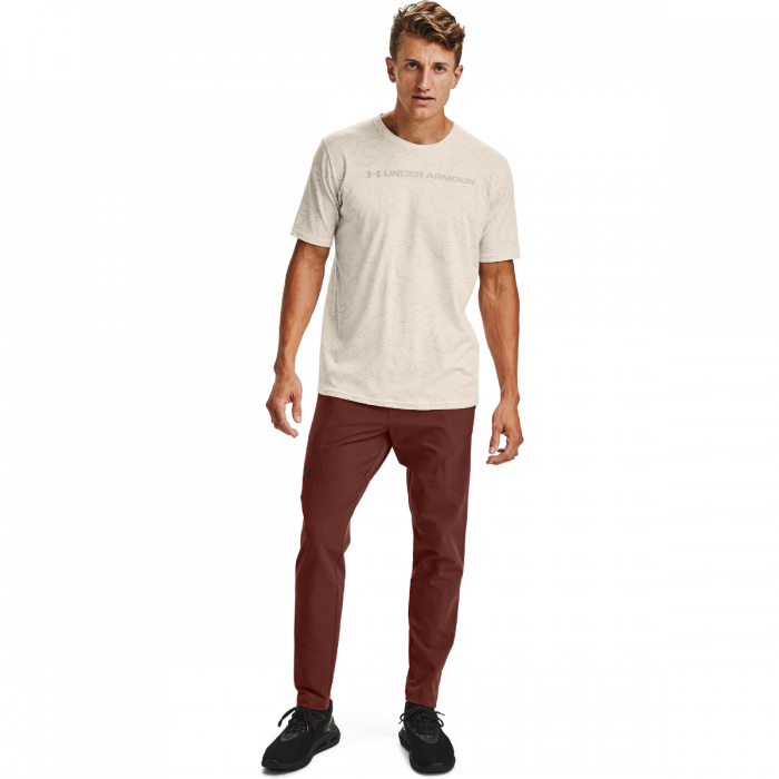 Az All Over Wordmark Brown egy sport- és szabadidős póló aktív férfiaknak. Modern szabása van, amely nem fogja korlátozni a mozgást. Kellemes anyagból készül, amely izzadságelvezető technológiával rendelkezik, és biztosítja a szárazság érzését edzés közben.