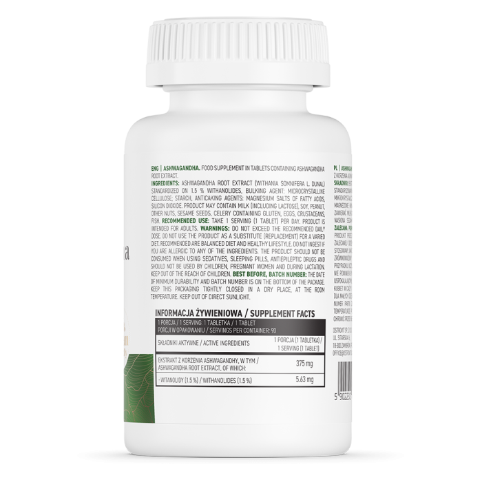 Ashwagandha az ashwagandha (Withania somnifera) gyökeréből készült funkcionális kivonat, amelyet 1,5% withanolidra standardizáltak. A kényelmes tablettákkal kényelmesen és egyszerűen gazdagíthatja egészséges életmódját.