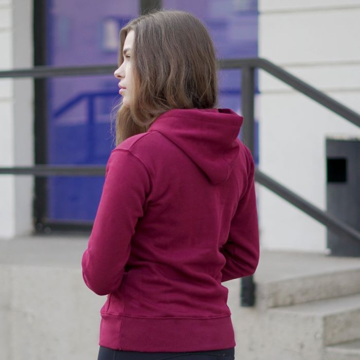 Athlete Burgundy női pulóver – kényelmes kapucnis pulcsi, mely szolgálatát teszi edzés közben, de stílusos fitness darabként is megállja a helyét