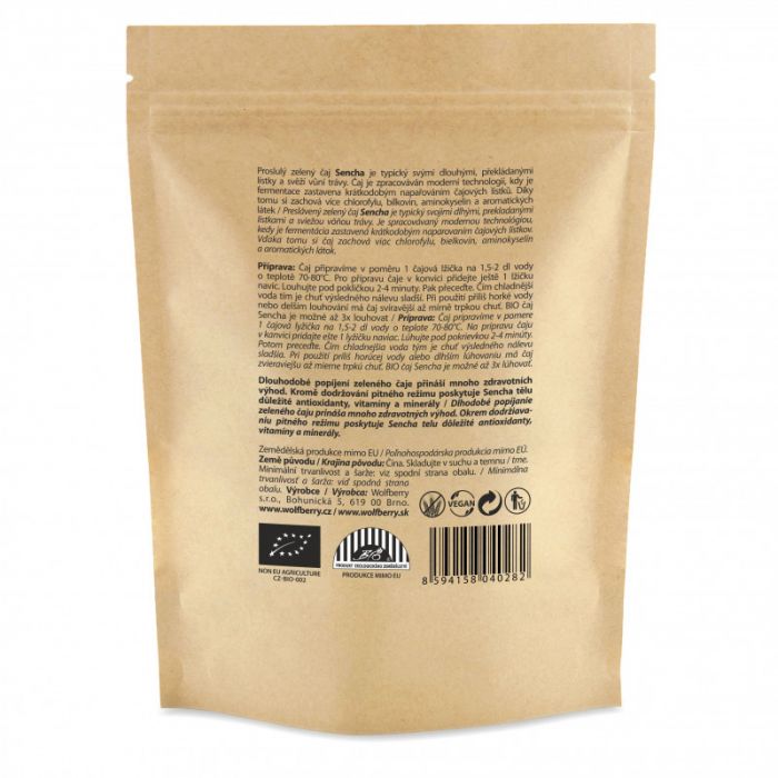 A BIO Sencha zöld tea, egy olyan zöld tea fajta, amely Kínából származik. Egyedi íz és halvány szín jellemzi. A Sencha zöld tea fogyasztása nagyon előnyös az egészségre, tekintve, hogy nagy mennyiségű antioxidánst, vitamint és ásványi anyagot tartalmaz.