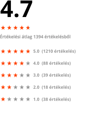 Ez a szám a termék minőségének átlagos értékelését jelöli, amelyet az összes ellenőrzött értékelésből kaptunk, azaz azoktól a vásárlóktól, akik az adott terméket a felhasználói fiókjukon keresztül vásárolták meg a webáruházunkban.