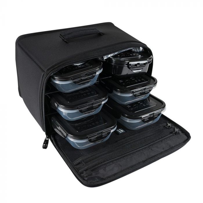 A Beast Duffle Black ételhordó táska, amely több, mint 8 órán keresztül frissen tartja az ételeket. Kiváló minőségű ballisztikus nejlonból készült és 6 étkezésnyi tárolódobozt szállíthatsz ebben a hatalmas táskában. 5 db légmentesen záró ételdobozt, 1 db Large Sport Nutrition dobozt és 3 db minőségi hűtőgélt tartalmaz. Az ergonomikus füleknek és fogantyúknak köszönhetően kényelmesen utazhatsz vele.