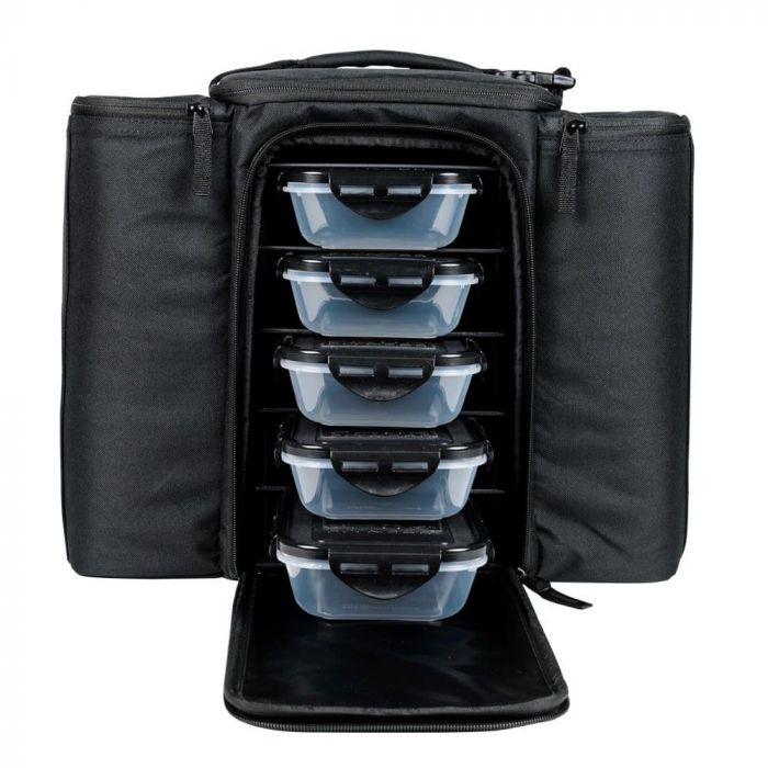 Az Expert Innovator 500 ételhordozó táskában könnyen el tudjuk rendezni az egyes fogásokat és így akárhová magunkal vihetjük őket. Biztosak lehetünk benne, hogy az élelmiszerek frissek maradnak. A táska hordozható, kiemelkedően jó minőségű anyagból készült – poliészter. Három különböző ételt tárolhatunk benne, a belsejében található polcok állíthatóak. Tartalmaz 5 db légmentesen záró ételdobozt, 1 db Large Sport Nutrition dobozt és 2 db minőségi hűtőgélt. Van két oldalsó zseb is vízre, edényre, gyümölcsre vagy shakerre. A teljesen elszigetelt belső tér frissen tartja az ételeket több, mint 8 órán át. Az ergonomikus füleknek és fogantyúknak köszönhetően kényelmesen utazhatunk.
