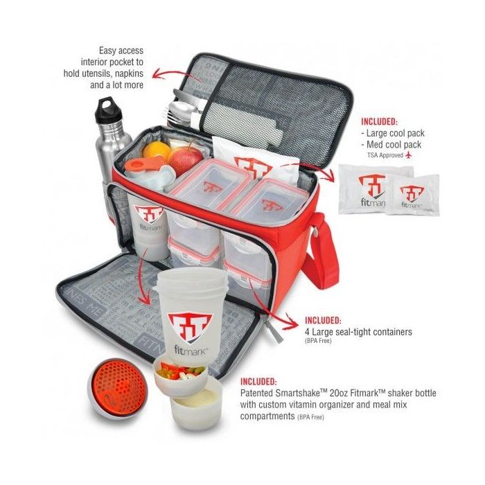 The BOX LG piros ételhordó táska, amelybe bepakolhatod egészséges ételeidet és bárhová magaddal viheted. Minőségi ballisztikus nejlon anyagból készült könnyű és hordozható táska. A csomag tartalma a 4db szorosan záródó ételhordó (BPA free), egyedi shaker, vitamin és fehérje tároló rekeszekkel és 2db kiváló minőségű jégakku.