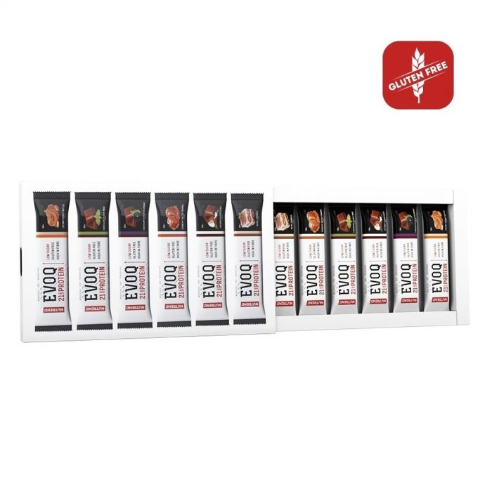 Az EVOQ fehérje szelet egy ízletes low carb fehérje szelet, amely 21 g fehérjét, rostot, cinket és kolosztrumot tartalmaz – azaz mindent, amire egy aktív embernek szüksége van. Gluténmentes és 6 különböző ízben élvezhetitek ki, mint a sós karamell vagy a mogyoróvaj.