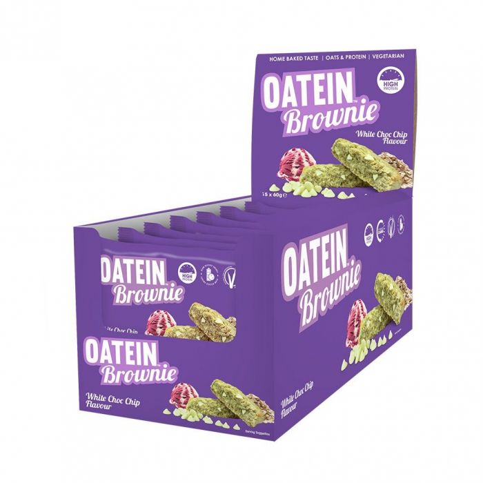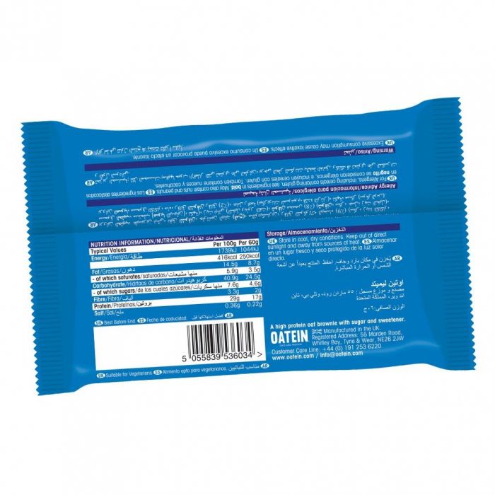 Az Oatein Brownies egy ellenállhatatlan fehérje snack, melyet táplálkozási szakértők terveztek, mégpedig úgy, hogy minden egészséges táplálkozásnak megfelelő igényt kielégítsen. Kiváló íz, minőségi fehérjék, rostok és komplex szénhidrátok. Ez az édes brownie (60 g) 17 gramm fehérjét tartalmaz, mindig érdemes kéznél tartanod, amikor éppen egy kis édességre fáj a fogad.