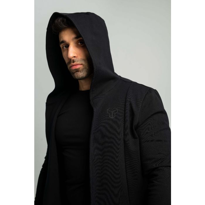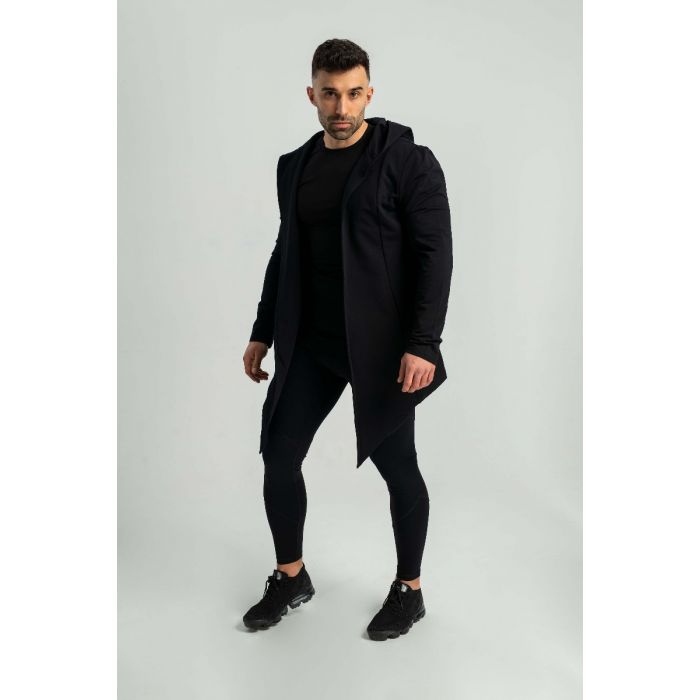 A Kapucnis kardigán egy sokoldalú darab, aszimmetrikus, V alakú, hosszított szabással, ahol a V az edzéscéljaid elérését jelentő győzelmet szimbolizálja. Minden olyan férfi kedvenc viselete lesz, aki divatos külsőt szeretne a konditeremben és azon kívül is. Minimalista dizájnja tökéletesen illeszkedik ruhatáradba, így könnyen kombinálhatod kedvenc darabjaiddal. A kardigán által biztosított stílus nem csak szabadidődben, de a munkahelyeden vagy az esti buliban is tökéletes. Viselheted bármelyik melegítőddel, nadrágoddal és farmeroddal. Az így kapott szett teljesen más szintet képvisel, amire garanáltan felfigyelnek a csajok is. A felső ráadásul puha, meleg és kellemes viseletet nyújt, köszönhetően a pamut és elasztán keverékéből készült anyagának.