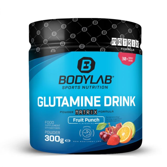 Egy adag Glutamine Drink friss gyümölcsital 5.5 g L-glutamint tartalmaz. Ez egy nem esszenciális aminosav, melynek szintje keményebb edzések és sportok végzése során csökken az izmokban, épp ezért szükséges, hogy ételekkel vagy táplálékkiegészítőkkel pótoljuk. Emellett, C-vitaminban, B6-ban, B12-ben, magnéziumban és az izomnövekedés szempontjából rendkívül fontos L-leucin aminosavban gazdag, mely segít növelni az italpor hatékonyságát. Fogyasztása edzés után vagy lefekvés előtt ajánlott.