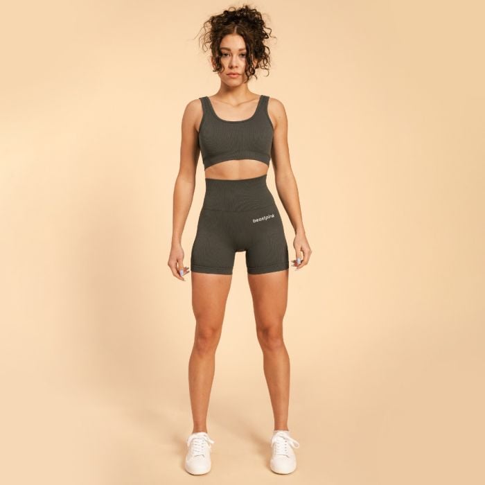 A melltartó tökéletes anyaga mellett a szabását is értékelni fogod. Úgy szabták, hogy tökéletesen simuljon az alakodhoz, így az edzésre koncentrálhatsz. Meg kell említenünk az időtlen dizájnját is. Lenyűgöző divatos bordázott mintája és nyitott hátrésze le fog nyűgözni, a hátoldalán pedig stílusos BeastPink logó díszíti.