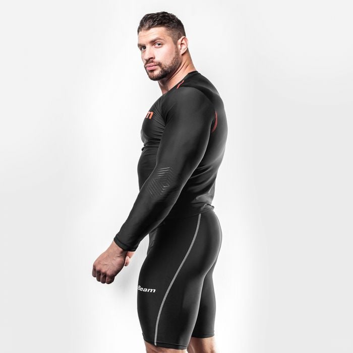 A kompressziós felső erősen megtartja az izmokat és így ideális feltételeket biztosít a fizikai tevékenység során. Nem csak a testhőmérsékletet őrzi meg és a vizet vezeti el, de lehetővé teszi az edzések hosszának és terhelésének növelését. A kompressziós felső 80% nylonból és 20% elasztánból tevődik össze.