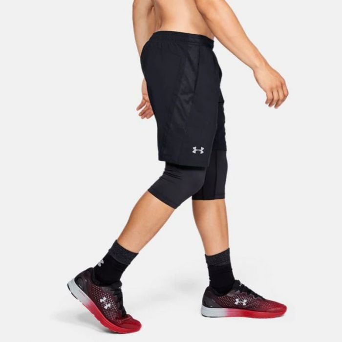 A Launch SW 2-in1 Short egy ultra könnyű és légáteresztő férfi rövidnadrág, mely HeatGear® és Anti-Odor technológiával rendelkezik, aminek köszönhetően kiválóan elvezeti az izzadságot, szárazon tart, és meggátolja a kellemetlen szagok kialakulását. A csípője flexibilis, elasztikus, melyet belső madzag egészít ki a méret igazítása érdekében.
