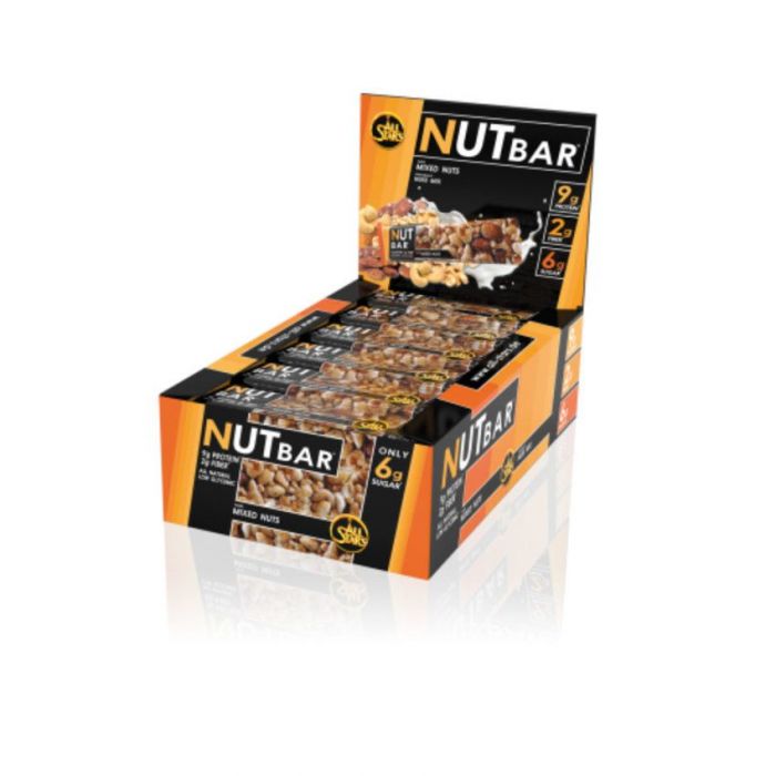 A Nut Bar egy mogyorós szelet, amely különböző mogyorók, mandula, valamint földimogyoró keverékéből készült. Ennek köszönhetően 9 g fehérjét, 4 g rostot és egészséges zsírokat tartalmaz. Ez az alacsony glikémiás indexel rendelkező szelet 233 kcal-val kiváló csemegeként szolgál, ideális edzés előtt és után, vagy étkezések között tízóraiként.
