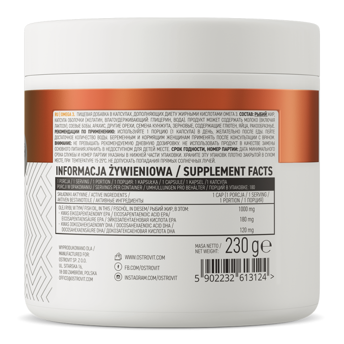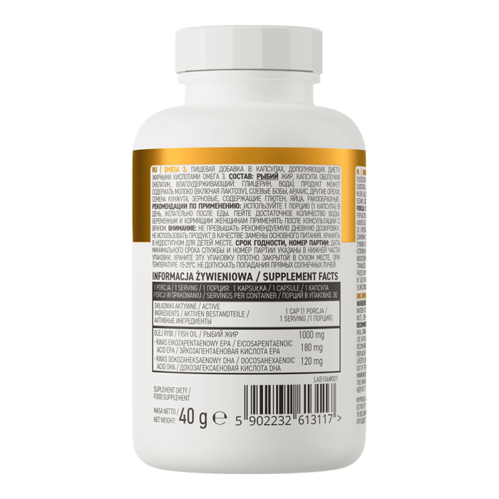 Az Omega 3 kapszula egészséges halolajat tartalmaz, ami egészséges zsírok, eikozapentaénsav (EPA) és dokozahexaénsav (DHA), természetes forrása. Ez a két zsírsav együttesen támogatja a szív megfelelő működését, a DHA pedig emellett hozzájárul a normál agyi funkciók és a jó látás megőrzéséhez is. Mivel a szervezetünk nem képes őket önmaga előállítani, ezért fontos a rendszeres pótlásuk.