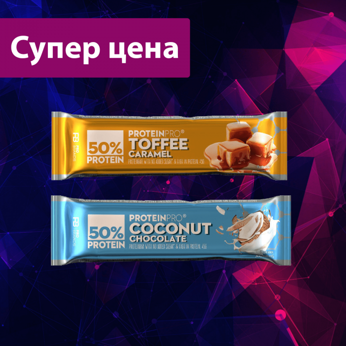 Toffee & Karamella ízesítés: Fehérje keverék (40,9%) (kollagén-hidrolizátum, szójafehérje izolátum, tejsavó fehérje koncentrátum, tejfehérje izolátum), tejcsokoládé édesitőszerrel (15%) (édesítőszer: maltitol, kakaóvaj, teljes tejpor, kakaómassza, zsírszegény kakaópor, emulgeálószer: napraforgó lecitin, ízfokozók), stabilizálószerek: glicerol, frukto-oligoszacharidok, édesítőszer: maltitol, repceolaj, rizs chips (rizs, szárított répa), kakaópor, víz, kakaóvaj, emulgeálószer: szójalecitin, ízfokozó.