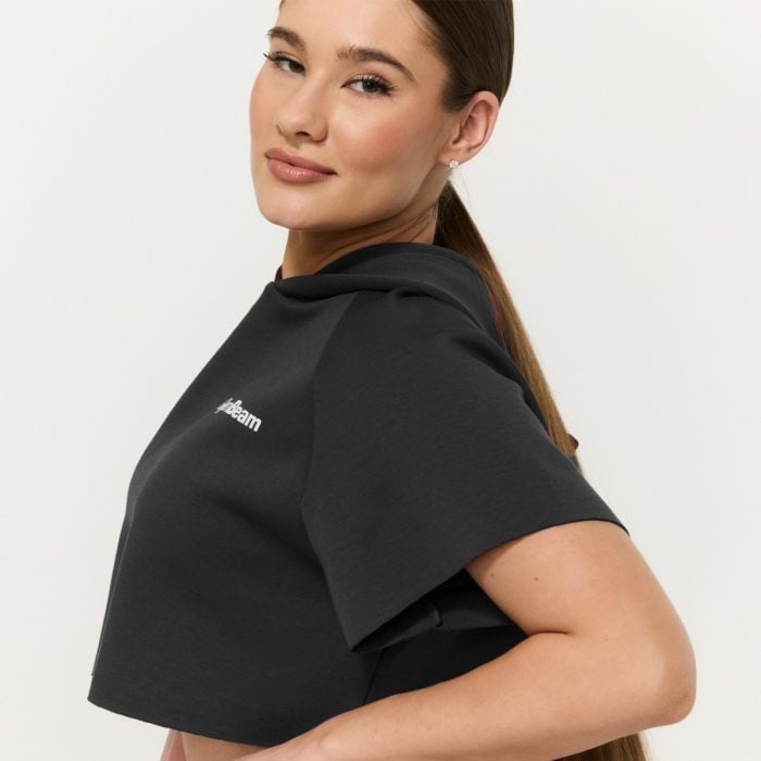 A Relay női kapucnis cropped pulóver egy eredeti darab rövid ujjakkal és kapucnival, amely biztosítja a trendi sportos megjelenést bármilyen körülmények között