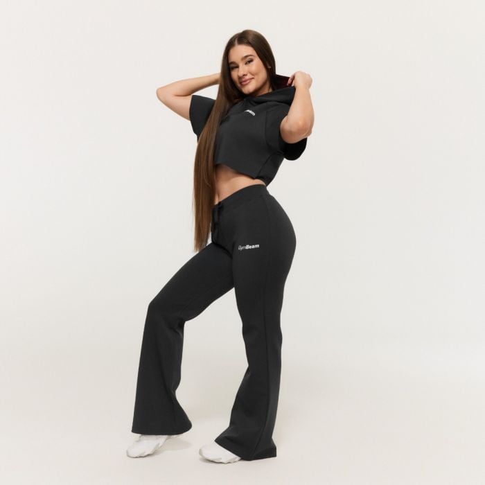 Ez a modell azonnal felkelti a figyelmet modern, "harang" stílusú szabásával, amely finoman szélesedik a térdtől lefelé. Ez a dizájn formálja az alakot és nagyon nőies megjelenést kölcsönöz. Mivel nincsenek zsebei, tiszta és elegáns megjelenést biztosít. Ezenkívül ez a közepes magas derekú melegítőnadrág praktikus gumiszalaggal és zsinórral van felszerelve, ami lehetővé teszi, hogy igényeid szerint állítsd be.