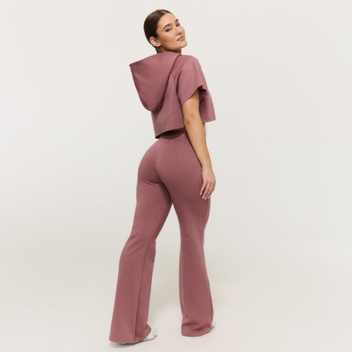 Ez a modell azonnal felkelti a figyelmet modern, "harang" stílusú szabásával, amely finoman szélesedik a térdtől lefelé. Ez a dizájn formálja az alakot és nagyon nőies megjelenést kölcsönöz. Mivel nincsenek zsebei, tiszta és elegáns megjelenést biztosít. Ezenkívül ez a közepes magas derekú melegítőnadrág praktikus gumiszalaggal és zsinórral van felszerelve, ami lehetővé teszi, hogy igényeid szerint állítsd be.
