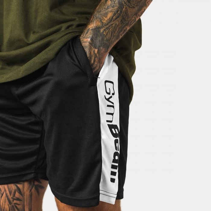 A Vertical Black férfi rövidnadrág 100% poliészterből készült, amely ultra könnyű, kellemes és légáteresztő, tehát bármilyen sporttevékenységhez ideális. Fekete színben kapható és az oldalán egy-egy fehér sáv húzódik GymBeam felirattal, amely megadja neki a sportos stílust. Dereka gumis, a derékbőség zsinórral szabályozható.