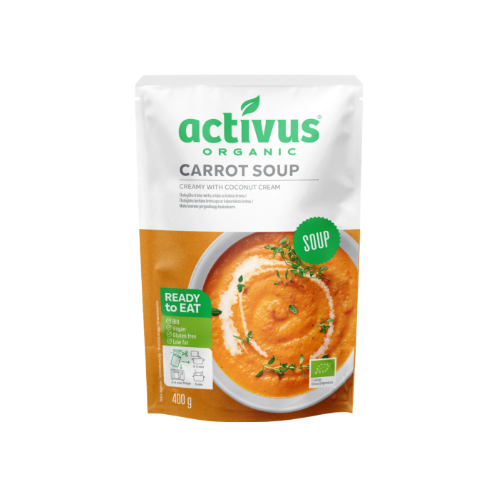 A sárgarépa-krémleves magas minőségű, bio nyersanyagokból készül, amelyek termelése vegyszerek nélkül történik. Illatával és ízével elkápráztatja érzékeidet, s ráadásul nagyon praktikus, bárhol és bármikor fogyasztható. Azonnali fogyasztásra kész termék, de úgy a legfinomabb, ha megmelegíted. A leves nem tartalmaz tartósítószert és allergéneket, ezért mindenki bátran fogyaszthatja, aki egészségesen szeretne étkezni. Ezenkívül modern, környezetbarát csomagolásban kapható.