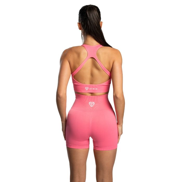 Ehhez kéz a kézben társul a jól átgondolt szabás. A mellrész alatt feszes, bordázott pánt található, amely kellemes érzés a bőr számára, nem nyom, mégis tart. A praktikus, kivehető betét fokozza ezt a tartósságot. A varrásmentesdizájn maximális kényelmet biztosít a bőr számára. A hátoldalon található elegáns kivágás növeli a vonzerőt, miközben az anyag minimálisra csökken, így megakadályozza a felesleges izzadást. Annak érdekében, hogy a melltartó biztosan a helyén maradjon, két szélesebb pánttal rendelkezik, amelyek maximális tartást biztosítanak az intenzív edzések során. Az ízléses kerek nyakkivágás fokozza az általános stílusos megjelenést. Ennek a sportmelltartónak az egyik legnagyobb előnye a minimalista dizájnja. Az egyszínű alapot egy stílusos STRIX felirat egészíti ki a hátoldalon és egy diszkrét logó az elején. Könnyedén kombinálható rövidnadrággal, leggingsszel vagy melegítőnadrággal. Egyedi szabásának köszönhetően még egy pulóvert vagy pólót sem akarsz majd felvenni rá. Ha egy kényelmes sportmelltartót keresel edzéshez és szabadidőhöz egyaránt, akkor most megtaláltad. A varrásmentes ruhák egyszerűen letisztult, minimalista vonalakat és vonzó megjelenést biztosítanak, és segítenek abban, hogy edzés közben is stílusos maradj.