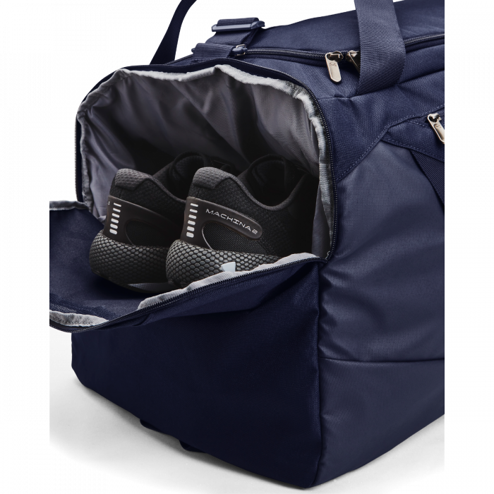 Az Undeniable 5.0 Duffle sporttáska remek választás mindenkinek, aki megbízható táskát keres a konditerembe vagy utazásaihoz. A UA Storm technológiának köszönhetően könnyedén áll ellen a kedvezőtlen időjárás körülményeknek, hogy az eső, a szél és a hó soha ne lephessen meg. A táska tartalmának további védelmet biztosít a habszivaccsal bélelt alsó rész. A verhetetlen minőséget tovább fokozza a többféle méretű zseb, ami elegendő helyet biztosít minden holmidnak, így kényelmesen elfér benne minden sporteszközöd.