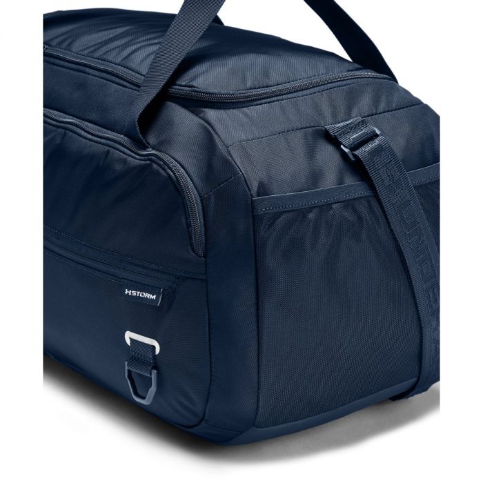 Az Undeniable Duffle 4.0 MD Navy egy tágas fitness sporttáska, mely Storm1 vízálló kivitelezésű, emellett stabil merevítőkkel lett megerősítve az alján és az oldalain. Tágas cipzáras első zseb található rajta, továbbá oldalsó cipzáras zseb, illetve beépített tárolóval például a cipőknek. Kényelmesen hordható kézben, valamint az állítható vállpánttal vállon is viselhető.