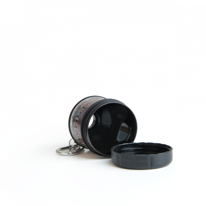 A Whey2Go Black tölcsér egy praktikusan kezelhető tölcsér, amely a kedvenc táplálékkiegészítők könnyű tárolására és adagolására szolgál. Szilárd műanyagból készül, amely megakadályozza a folyékony kiegészítők vagy italok kiszivárgását. Egy praktikus csatja is van, amellyel táskához vagy akár kulcsokhoz is rögzíthető a tölcsér.
