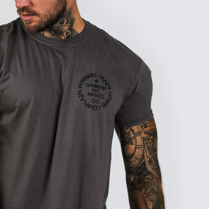 A Winners Train Charcoal egy laza szabású férfi fitness póló 100 % pamutból, melyet azonnal megkedveltek modern dizájnjának és stílusos feliratának köszönhetően. Megfelelő minden sportolónak, aki tudja, hogy a győztesek edzenek, míg a vesztesek kifogásokat keresnek.